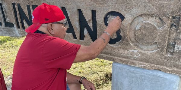 The Arch was recovered from the creek and carefully moved to be worked on. Due to being cracked and faded, KCA worked hard to bring the arch back to being presentable. A FSIS alumni painted the black into the letters, just as it was in the past.